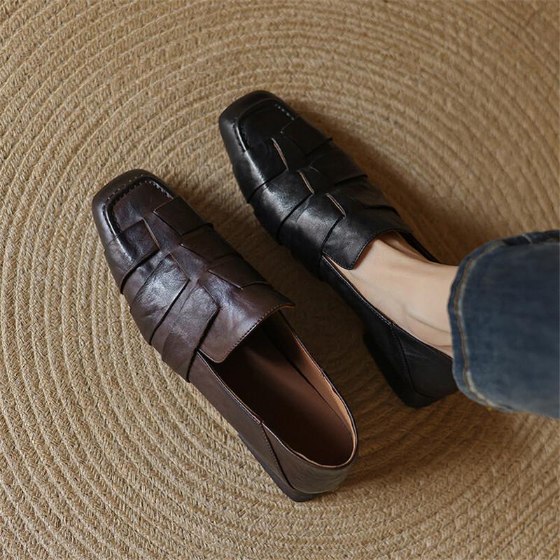 Fashion New Autumn Genuine Leather Women Pumps Fashion Square Toe Shoes for Women Chunky Heel Women Loafers Zapatos Mujer Low Heels