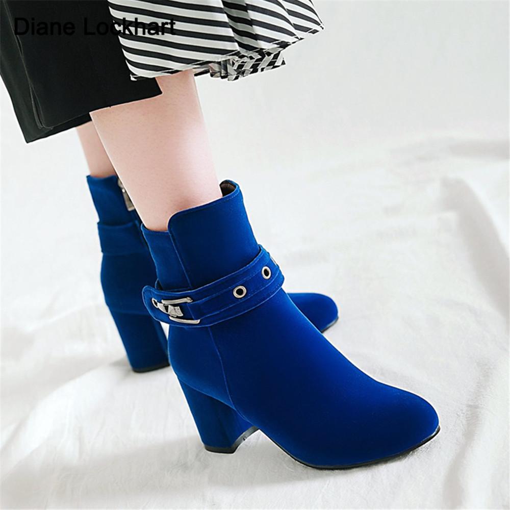 Fashion Large Size Round Toe Square Heel For Women Boots Fashion Buckle Ankle Boots Women Shoes Zipper Cheap High Heel Boots Woman 31-43