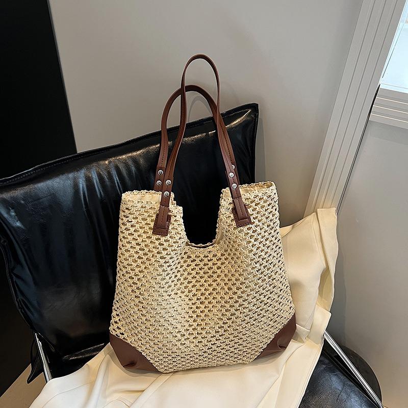 Popular Women's Bags, Contrasting Colors, Fur, Straw Woven Bags, Women's Large-capacity Underarm Shoulder Bags, Seaside Vacation Beach Handbags