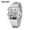 SANDA Electronic Watch Men Square Steel Band Digital Wristwatch Temperature Measurement Stopwatch Timing Multifunctional Watch