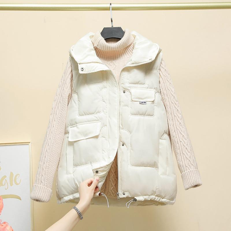 New Vest Women's Casual Small Model Hooded Stand-up Collar Large Size Cotton Vest Women's Thickened Warm Back