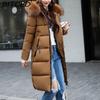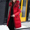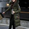 BITCED Autumn/Winter Women's Long-Length Cotton Coat with Hood and Large Fur Collar Down-Filled Cotton-Blend Padded Jacket