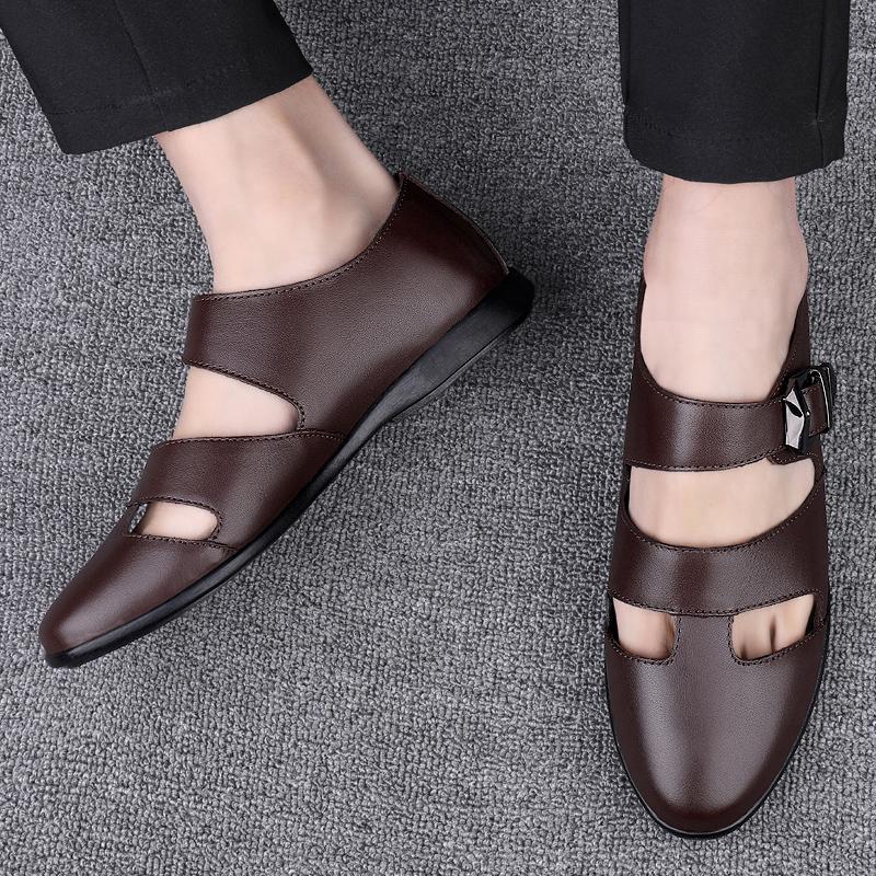 Fashion Breathable Outdoor Sandals for Men New Style Summer Flats Soft Sole Anti-slip Casual Leather Roma Shoes Man Formal Dress Sandals