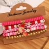 Valentine's Day Bracelet Multi-layer Stacked Pink Love Pendant Bracelet Soft Pottery Beaded Elastic Bracelet