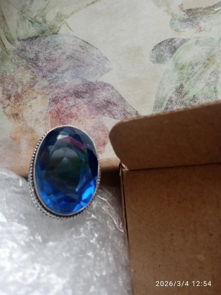 Beautiful ring with a cornflower-colored stone in a silver setting! The size isn't mine, but I used a silicone ring sizer.! Everything is done with quality, both on the right side and the wrong side! I recommend to buy!