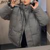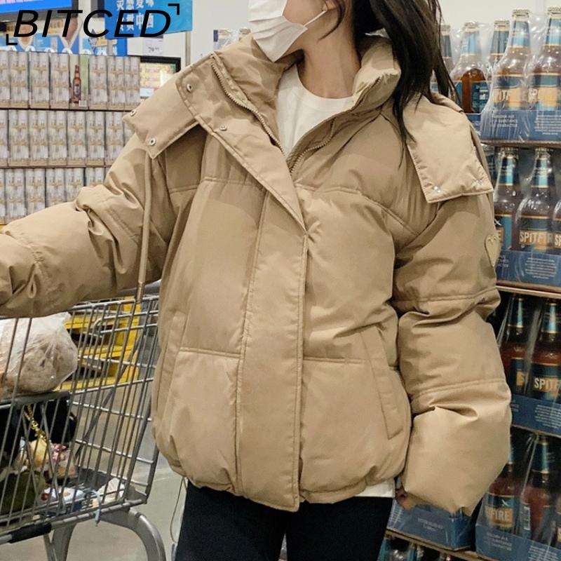BITCED New Style Women's Winter Short-Length Hooded Puffer Jacket with Design-Forward Thickened Fleece Lining