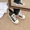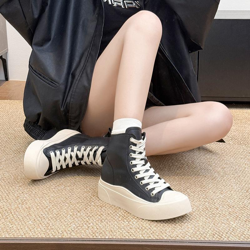 Sheepskin Version~ Thick Sole Design Sense Simple Invisible Height Increase Casual Shoes Women's New Lace-up Round Head High-top Shoes