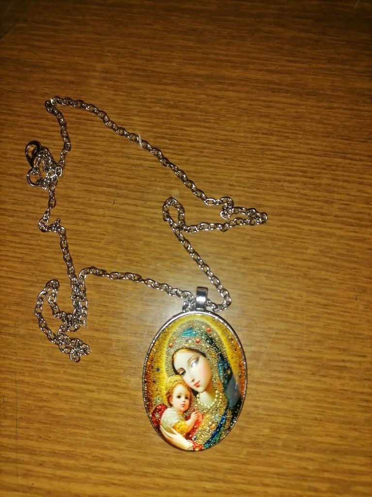 Photo of the Mother of God under glass. Beautiful locket, Not small. 👍 The chain is not long. Somewhere around 40cm. 🤔🤗