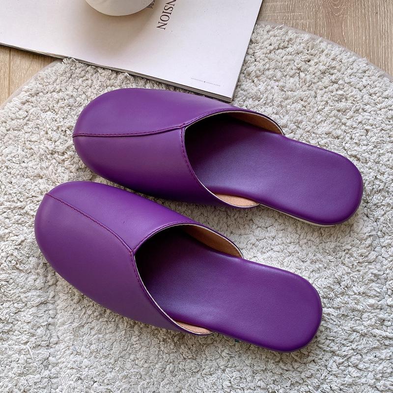 Fashion Women Slippers House Couple Indoor Summer High Quality PU Leather Flats Shoes Close Toe Casual Non-slip Slides Female