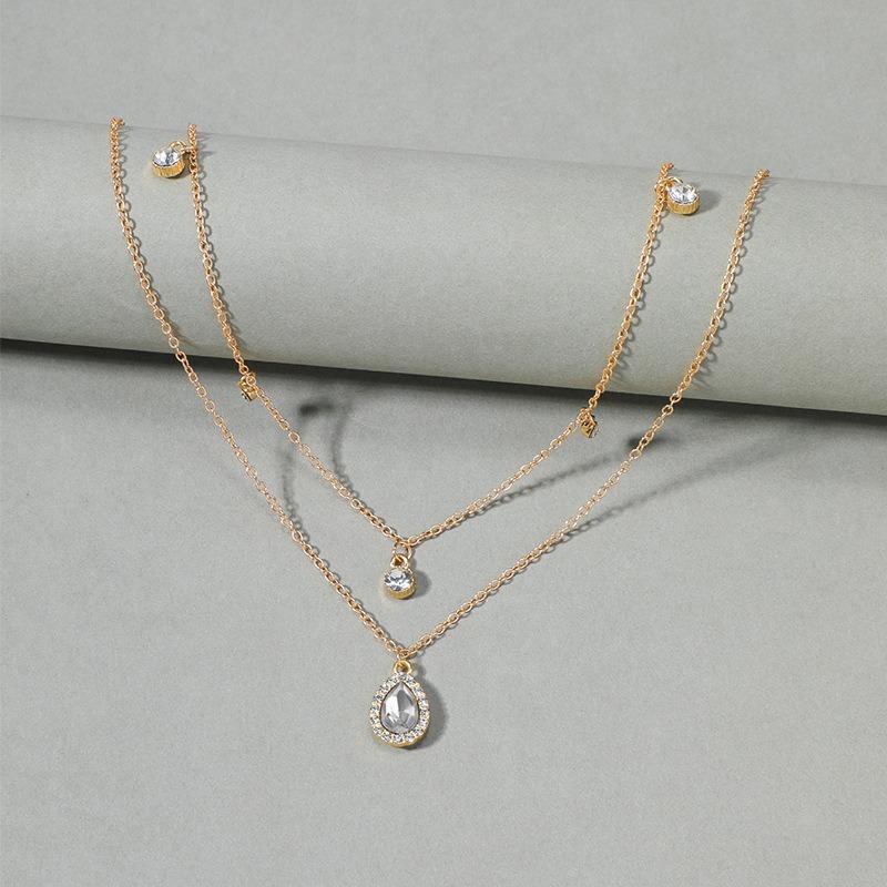 Multi-layer Crystal Necklace Stacked Jewelry New Gold-plated Water Drop Celebrity Long Sweater Chain Women
