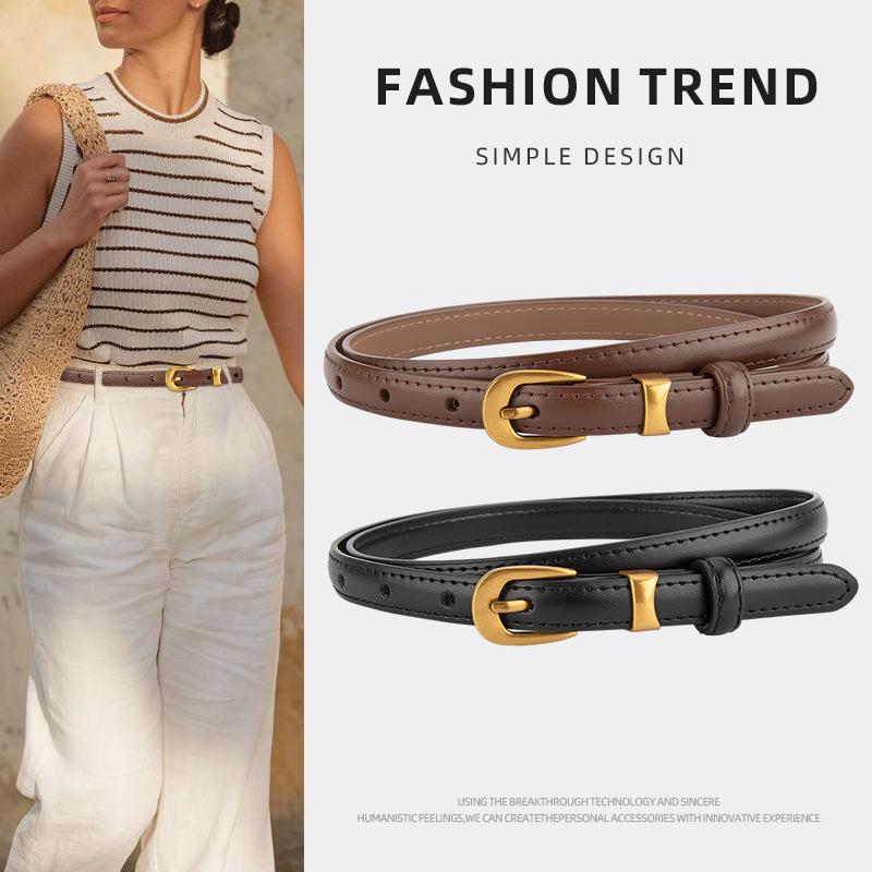 Genuine Leather Pin Buckle Women's Thin Belt with Jeans Fashionable Versatile Belt for Women Ins Style Cowhide Leather