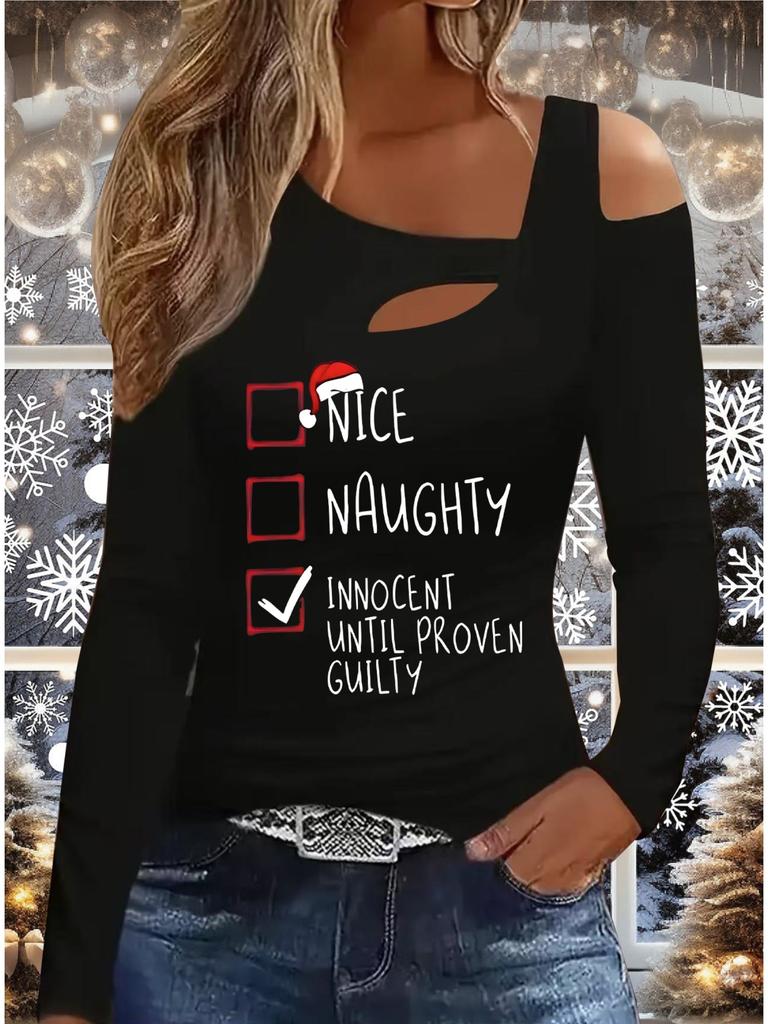 Autumn & Winter Women's New Casual Long Sleeve Top Christmas Pattern Ideal Halloween Christmas Gift T Shirt
