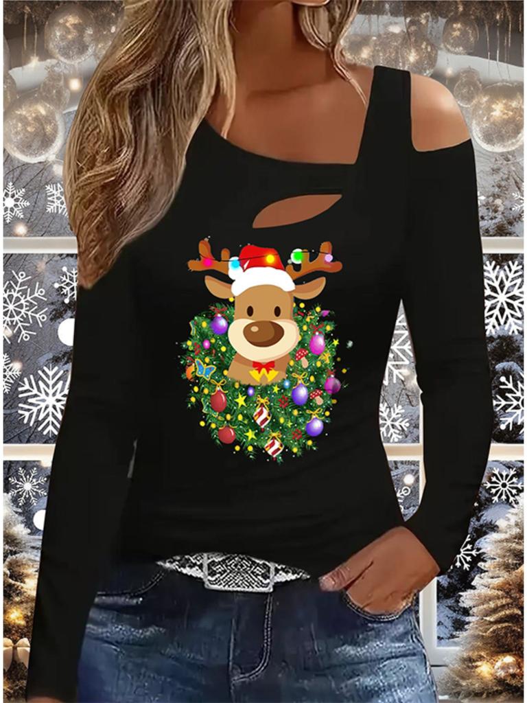 Autumn & Winter Women's New Casual Long Sleeve Top Christmas Pattern Ideal Halloween Christmas Gift T Shirt