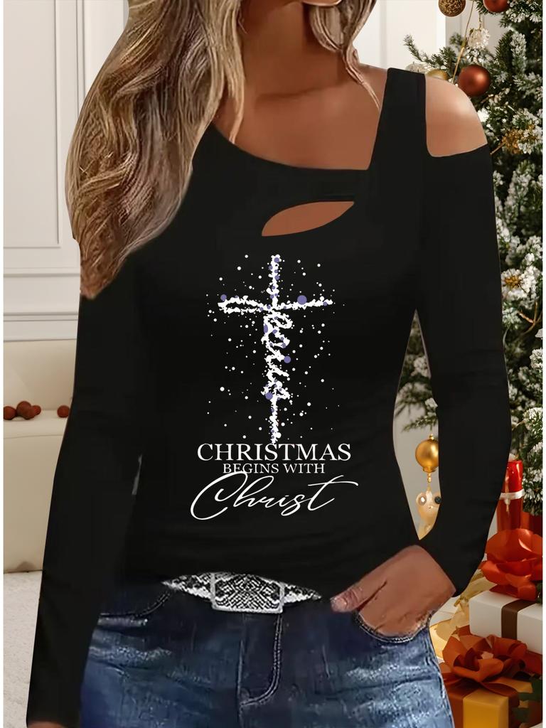 Autumn & Winter Women's New Casual Long Sleeve Top Christmas Pattern Ideal Halloween Christmas Gift T Shirt
