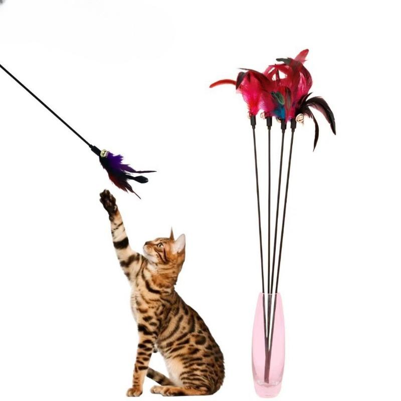 Long-stick, Seven-color Big Feather Cat Toy, Interactive Cat Toy with Bells, Self-entertaining and Boring Pet