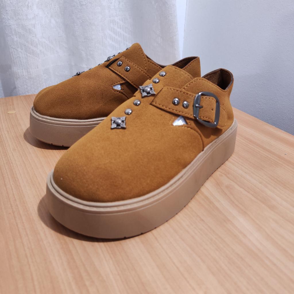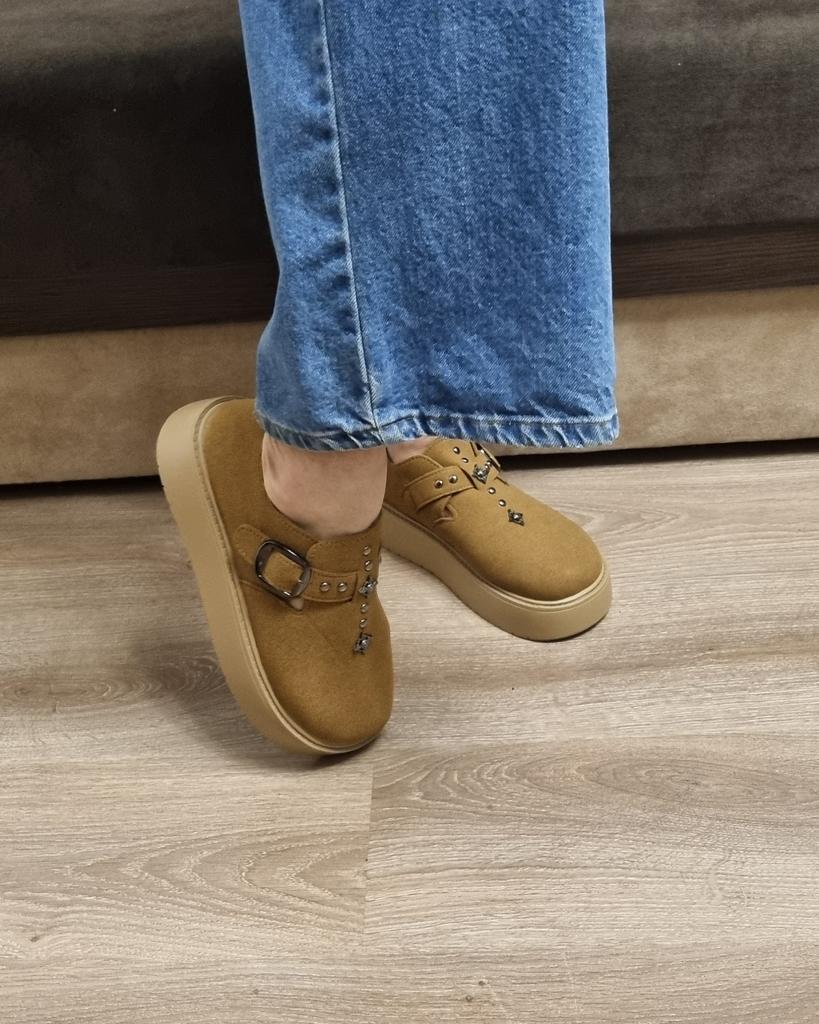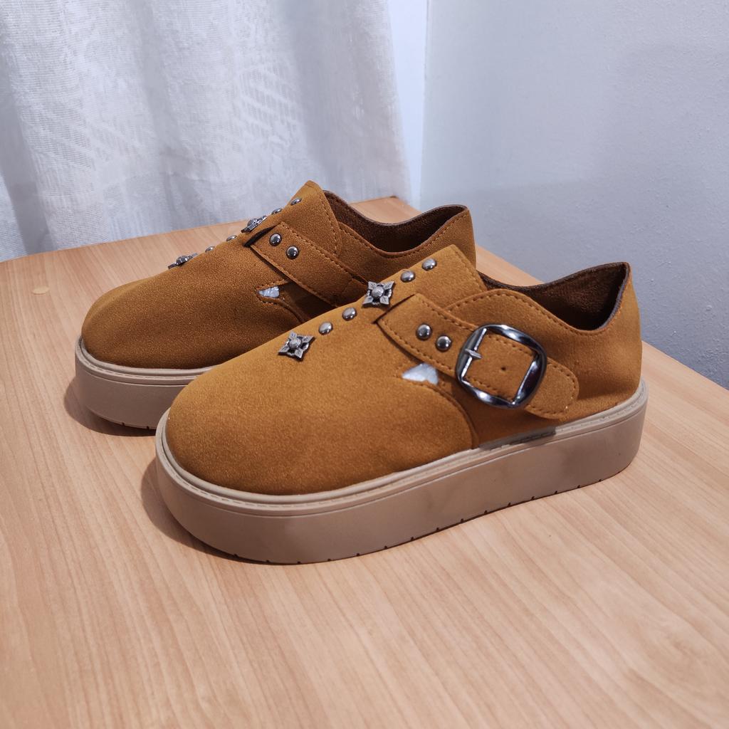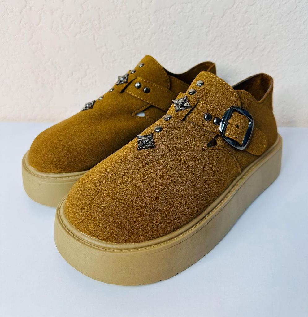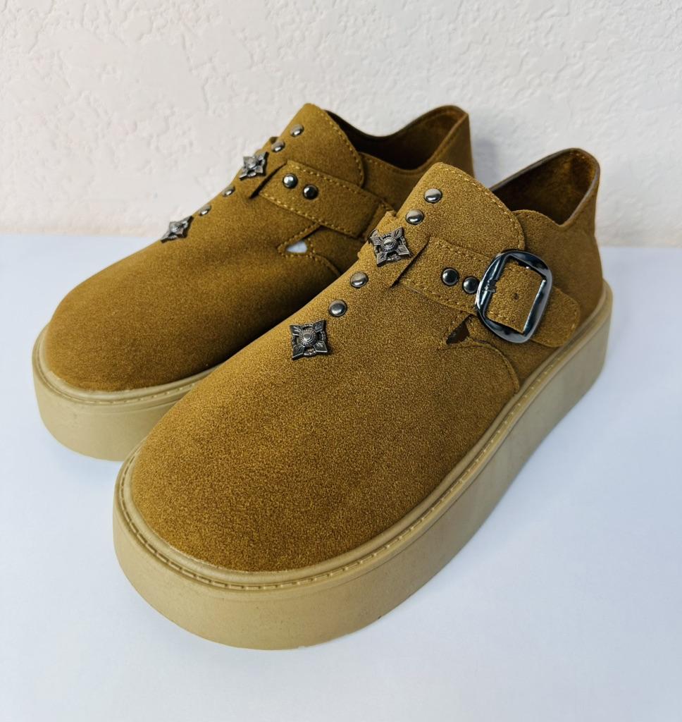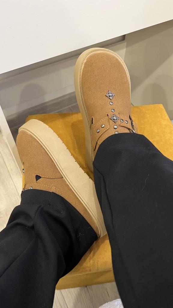 Stylish suede shoes🧡 Made of material similar to natural suede, of good quality. Odorless and without glue residue, hold their shape well. The beautiful mustard color goes perfectly with the color of the sole. Lightweight, comfortable, on a small platform. Interesting hardware in dark silver. The foot is comfortable inside)) Under jeans, knitted trousers will look very fashionable. For a foot length of 23.5, size 37 fit well, slightly loose. They will also fit a wide foot.. I showed everything in detail on the video! I recommend it from the bottom of my heart🧡