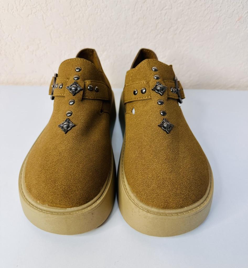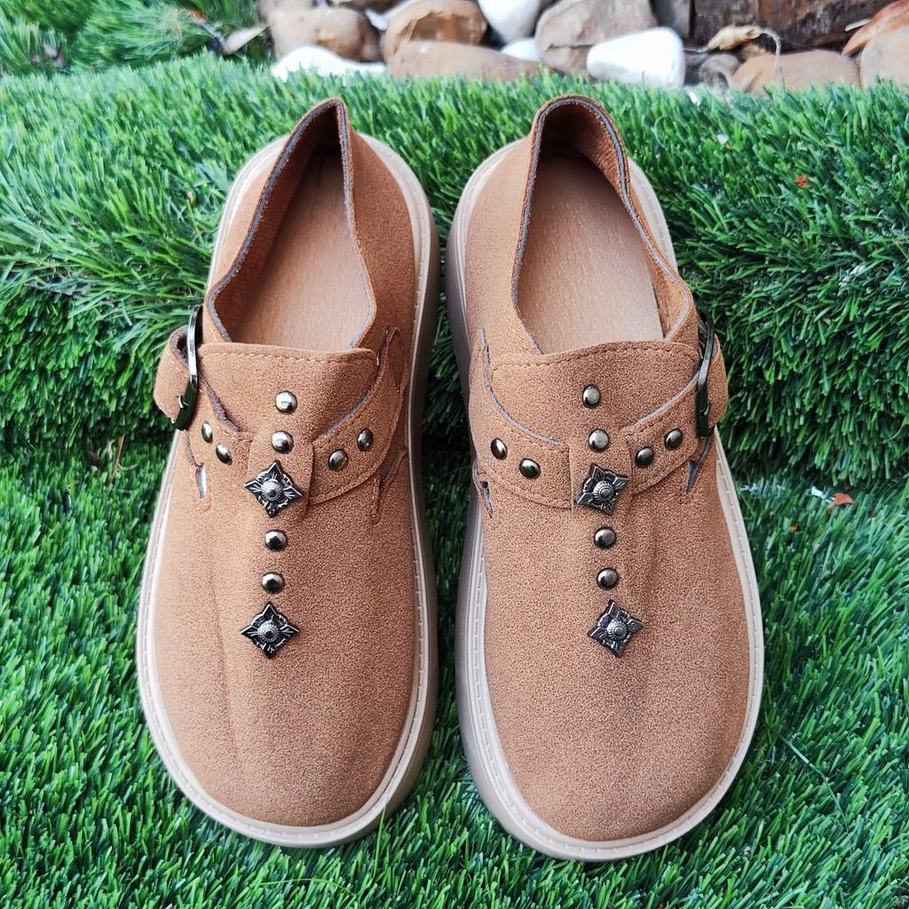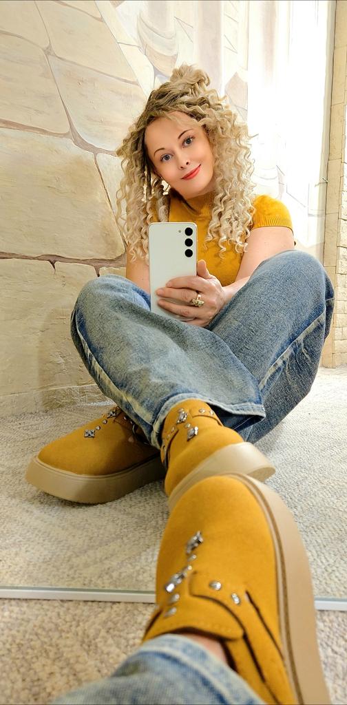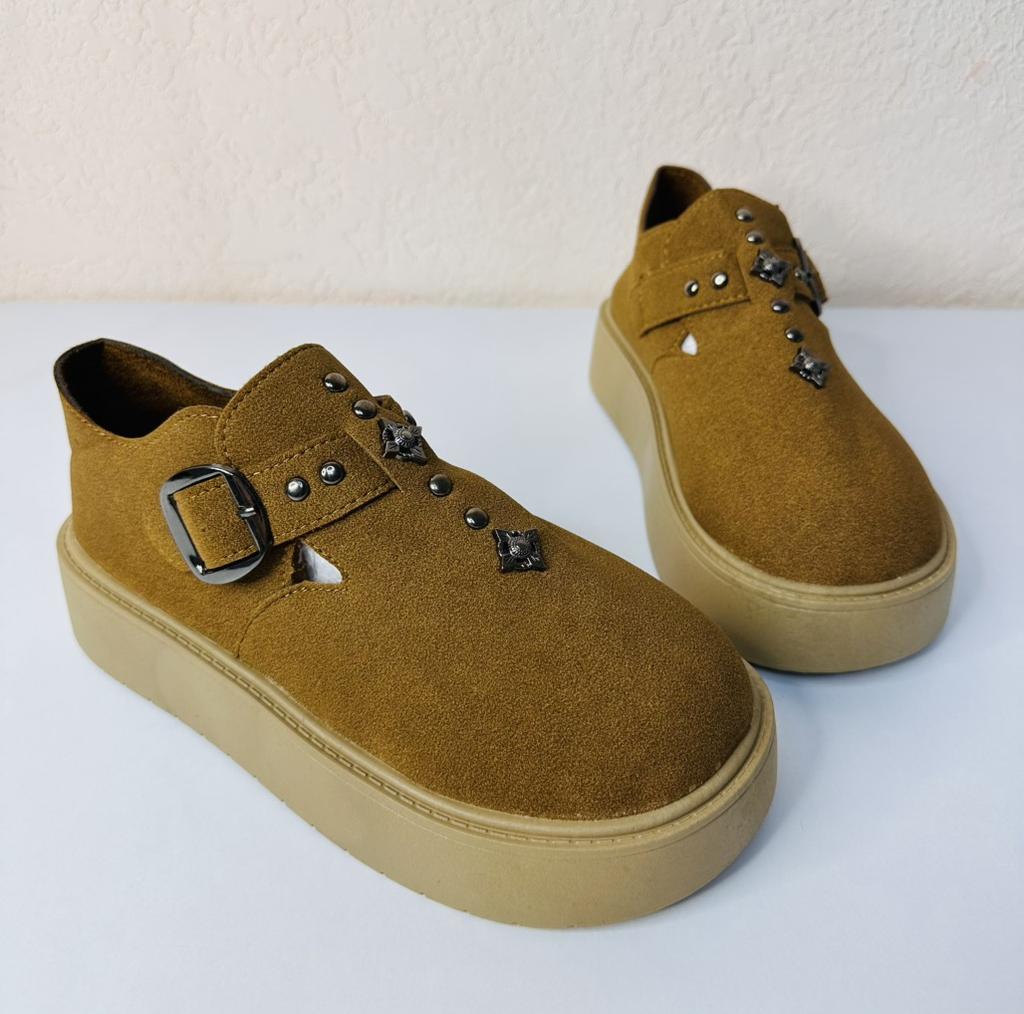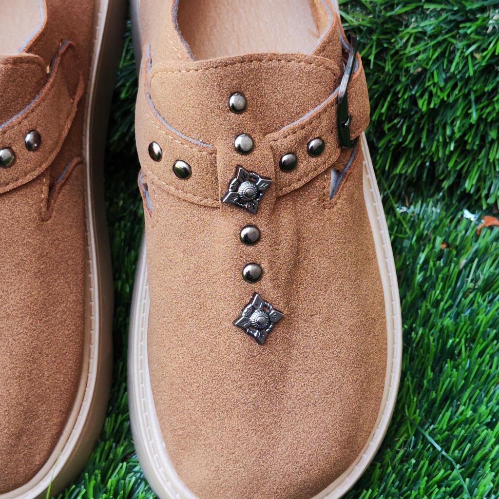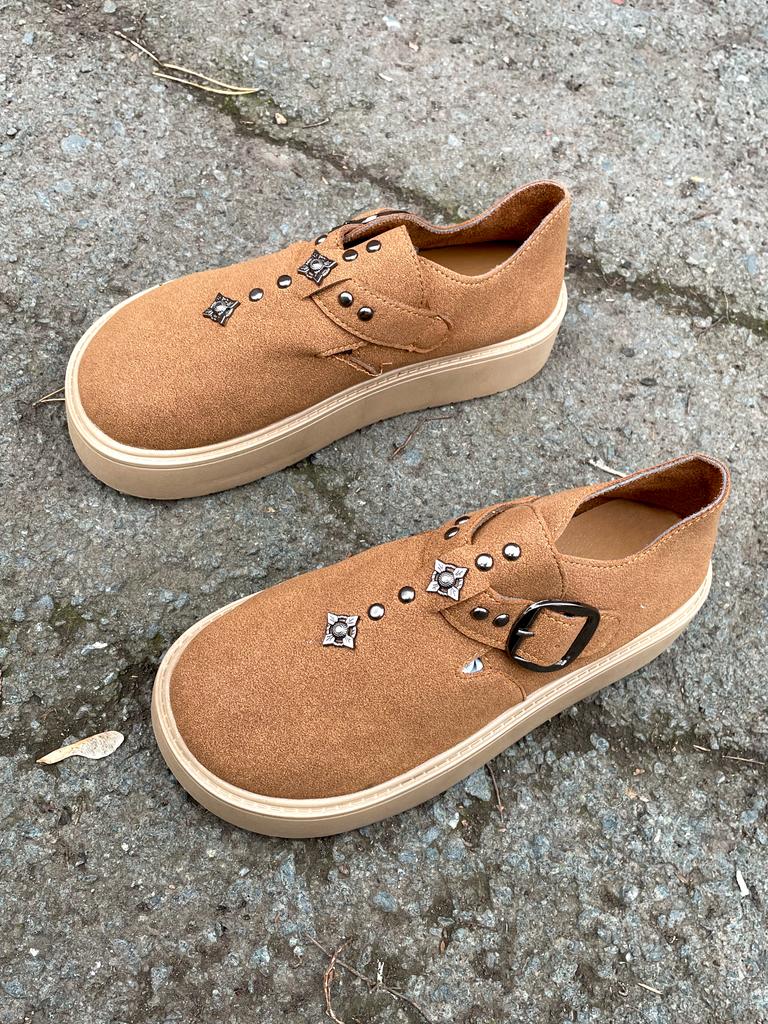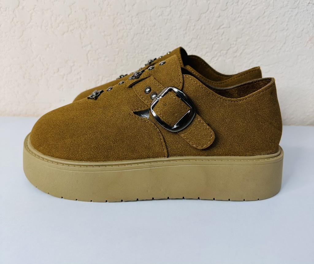 Stylish suede shoes🧡 Made of material similar to natural suede, of good quality. Odorless and without glue residue, hold their shape well. The beautiful mustard color goes perfectly with the color of the sole. Lightweight, comfortable, on a small platform. Interesting hardware in dark silver. The foot is comfortable inside)) Under jeans, knitted trousers will look very fashionable. For a foot length of 23.5, size 37 fit well, slightly loose. They will also fit a wide foot.. I showed everything in detail on the video! I recommend it from the bottom of my heart🧡