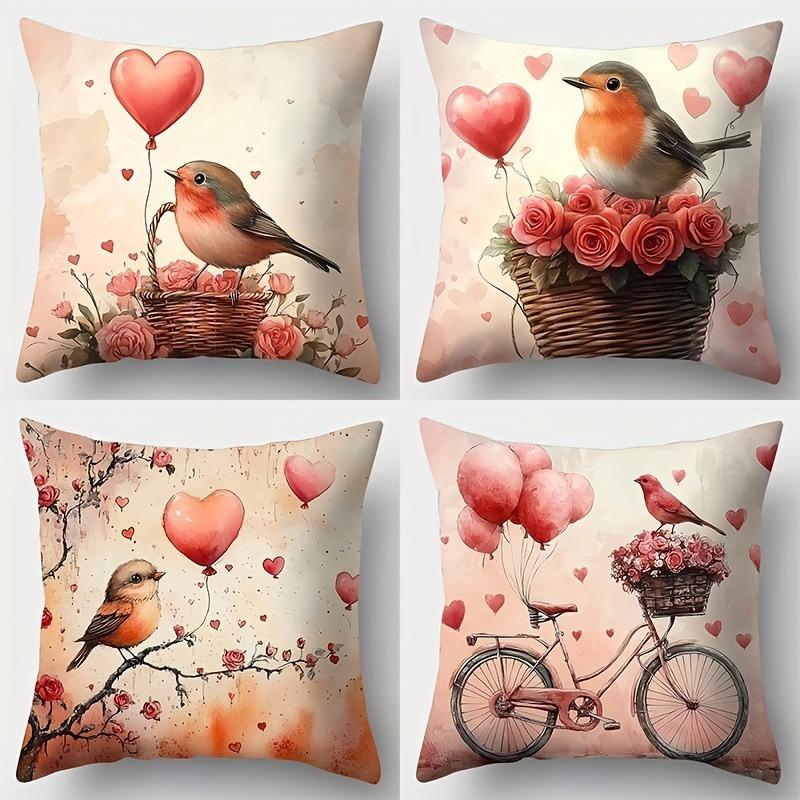 Adorable Bird with Heart - Shaped Balloon PillowcaseLiving Room Sofa Cushion Cover, Soft and Comfortable, Room Decoration