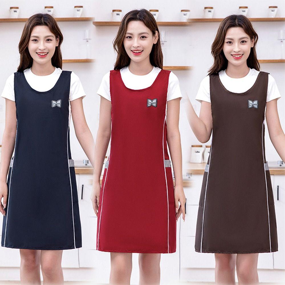Waterproof Waist-Cinching Shoulder Strap Apron Solid Color Oil-proof Cooking Baking Uniform Breathable Catering Work Clothes