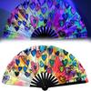 UV Ink Printing Bamboo Fan PVC Foldable Colorful Reflective Fan Lightweight Portable Photography Props Fan