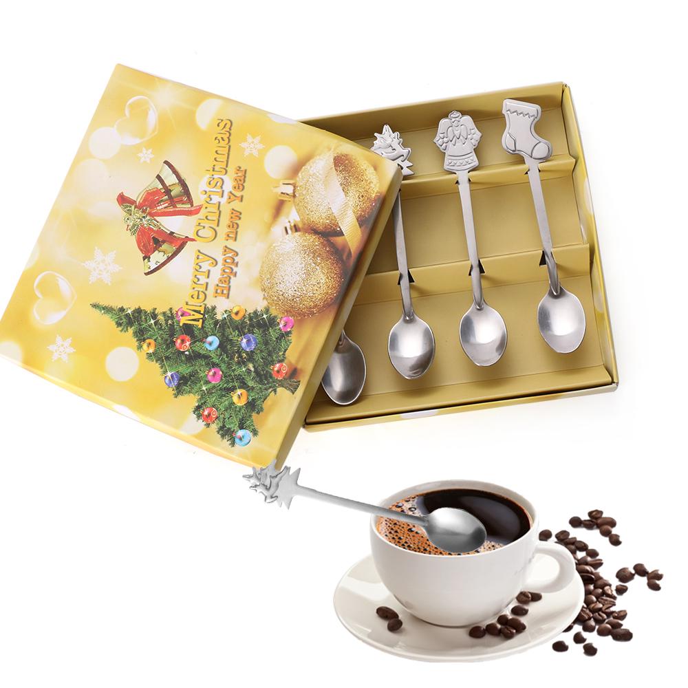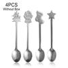 4pcs/set Stainless Steel Christmas Tableware Coffee Spoons Ice Cream Desserts Spoon Snowman Xmas Tree Kids Drinking Tea Scoops