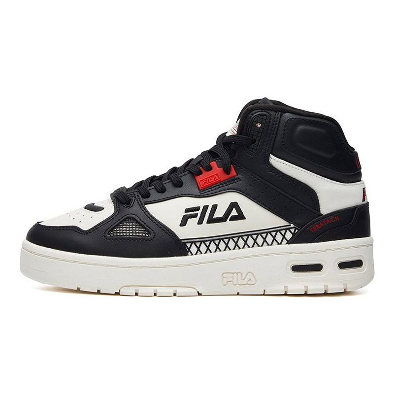 Fila Teratach Fabric Synthetic Leather Trendy Versatile High-Top Retro Basketball Shoes Women Sneaker Black White F12W111211FBW