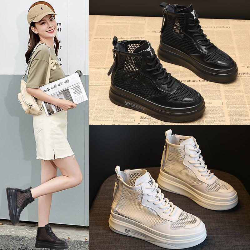 High-top Little White Shoes Women's Shoes New Breathable Mesh Shoes Versatile Thick-soled Muffin Sports Little White Shoes Women