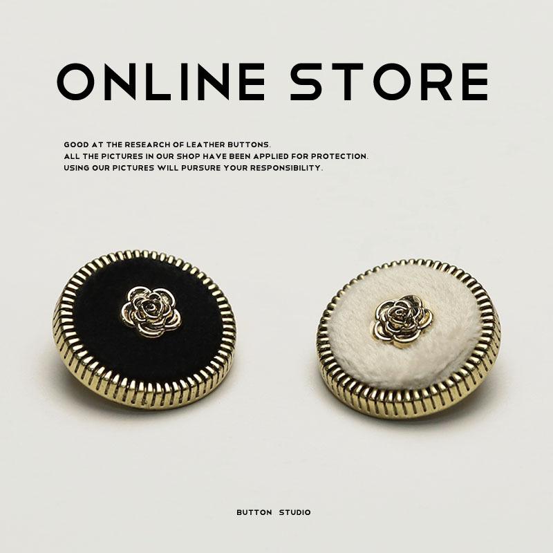 Flocking Virtual Edge Buttons, Small Flowers, Black And White Small Fragrant Jacket, Sweater Decorative Buttons, Suit Clothing Buttons