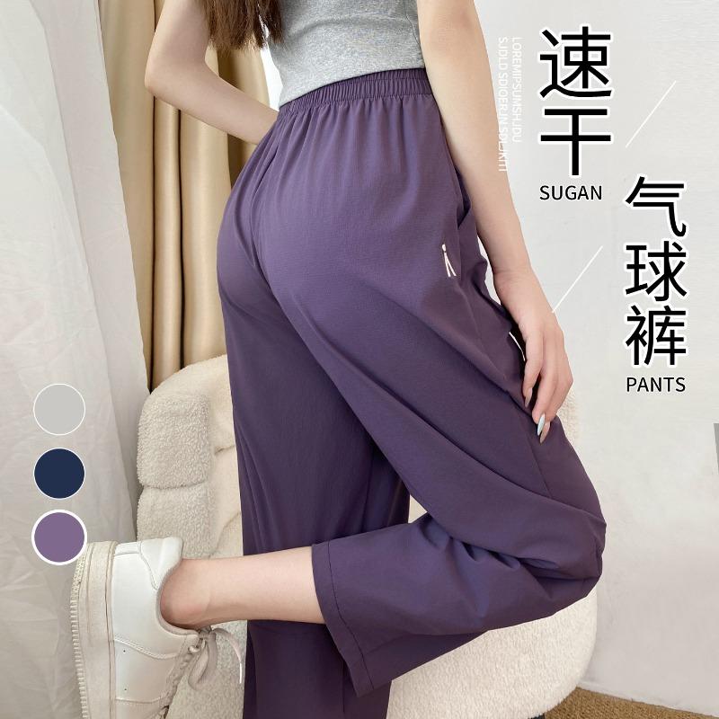 Purple Ice Silk Sunscreen Pants Women's New Summer Thin Large Size Fat Mm Nine Points Loose Quick-drying Sports Wide-leg Pants