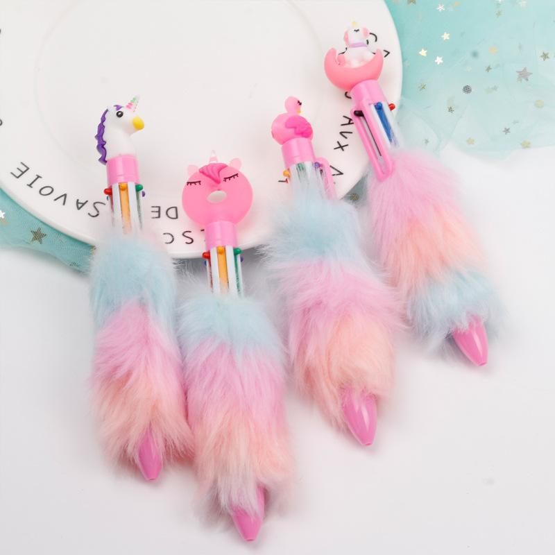 6-color-in-1 Rainbow Plush Ballpoint Pen 0.5mm Colorful Ink Writing Pen Cute Creative Stationery for Girl Kawaii School Supplies