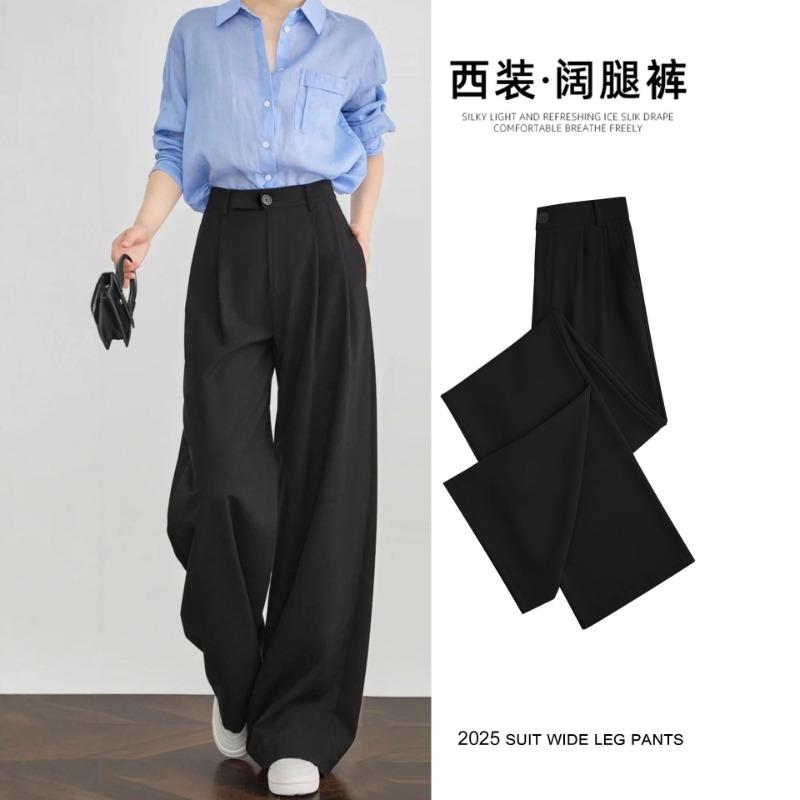 Black Suit Pants Women's Autumn New High-end High-waisted Pendant Casual Pants Straight Loose Wide-leg Pants