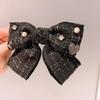 Elegant Plaid Fabric Bow Women's Pearl Rhinestones Gentle and Sexy Hair Clips Cute As Fashionable Headwear Accessories for Girls