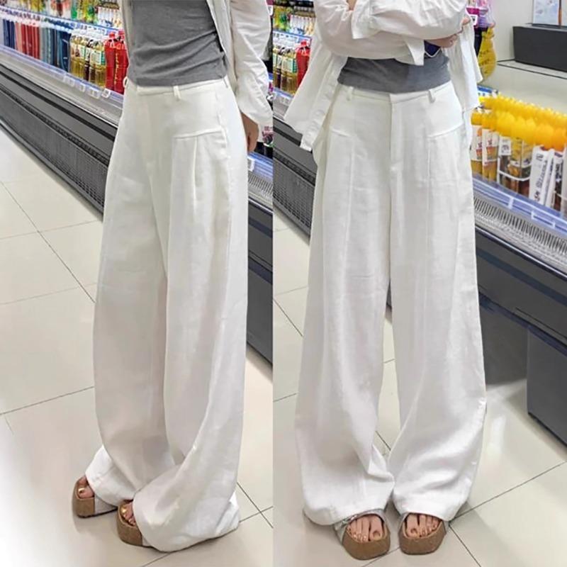 White Linen Suit Pants Women's New Autumn Lazy and Relaxed Old Money Style Small Cotton and Linen Wide-leg Pants