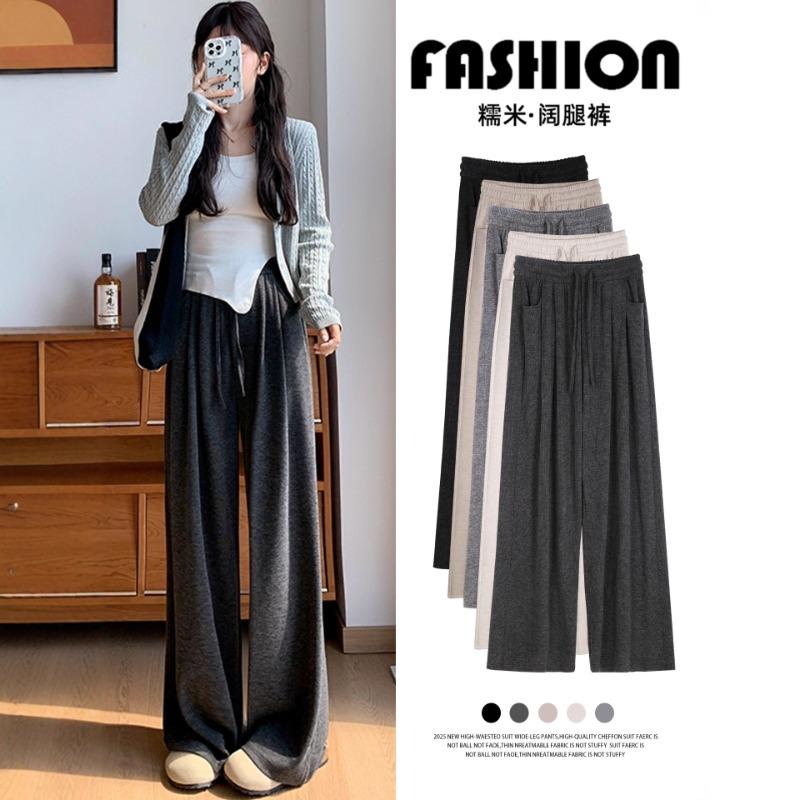 Grey Drape Glutinous Rice Pants Women's Spring and Autumn New High Waist Loose Lazy Style Small Casual Wide-leg Pants