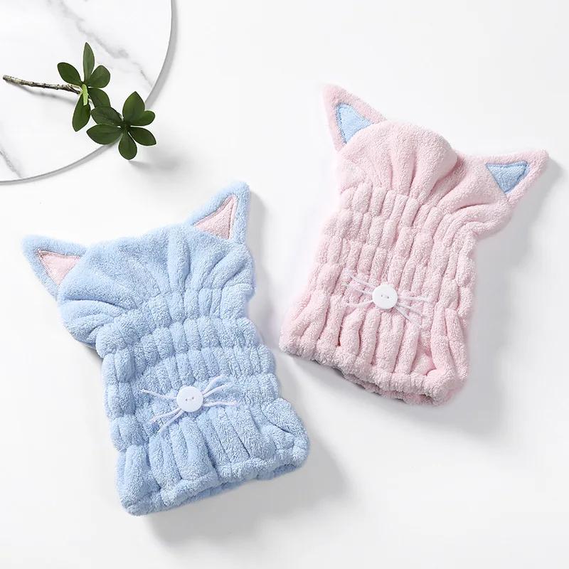 Cute Cat Microfiber Hair-drying Towel Bath Cap Strong Absorbing Drying Long Soft Special Dry Hair Cap Towel with Coral Velvet