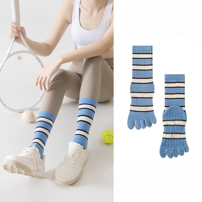 Spring and Summer Bright Striped Mid-calf Split-finger Cotton Socks, High-top Yoga Fitness Sports Anti-slip Socks, Five-finger Socks Pilates