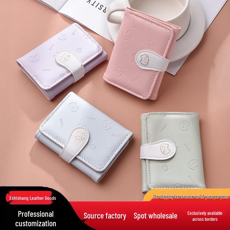 Three-Fold Cartoon Kitten Short Wallet: Multi-Card Slot Coin Purse for Women and Students