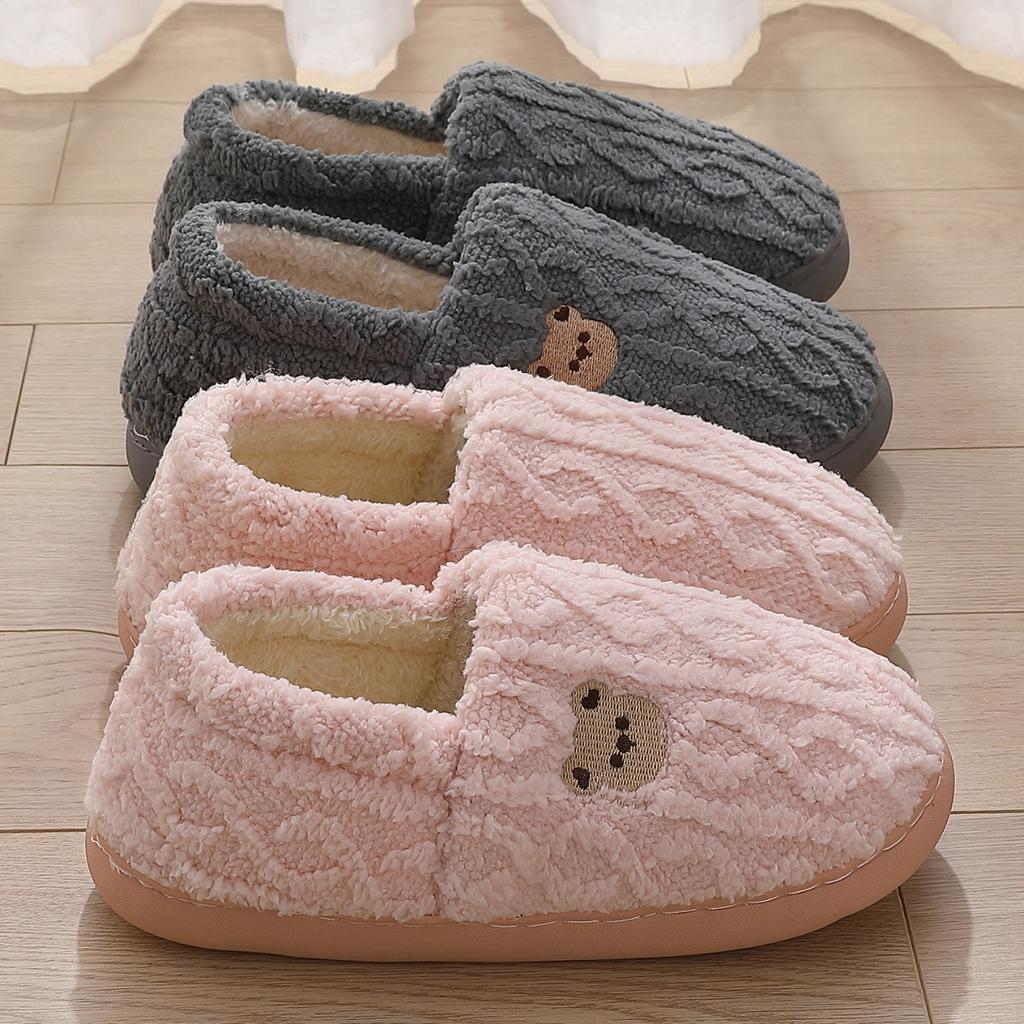 Cotton Slippers Men's Home Winter Bag with Couple Cartoon Teddy Bear Indoor Home Plush Warm Fur Slippers Women