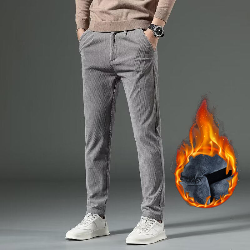 Men's Autumn and Winter Corduroy Thicken Pants Narrow Leg Casual Pants Thermal Plush Trousers Male