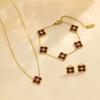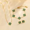 3PCS18k Golden Lucky Five Flowers Four Leaf Grass Flash Bracelet Earnail Set