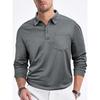 Men's Casual Loose Button Placket Solid Color Long Sleeve Mesh Lapel Men's Polo Shirt Shirt