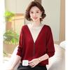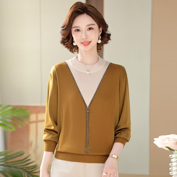 Spring New Mother Suit T Middle-aged and Elderly Women's Sweater Round Neck Thin Long-sleeved Sweater Loose Mother-in-law Top