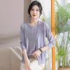 New Fashionable Shirt, Middle-aged and Elderly Women's Spring and Autumn Tops, Two-piece Set of Mother's Spring and Summer Solid Color Knitted Sweater