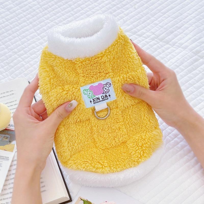Winter New Fleece Warm Pet Dog and Cat Plush Clothes, Teddy Bichon Frise Checkered Vest