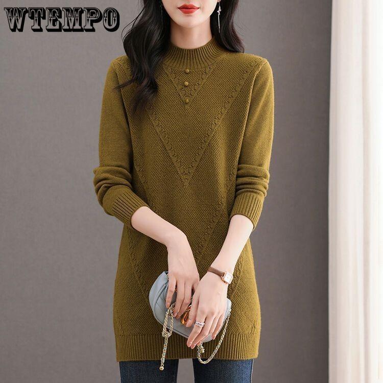 Half Turtleneck Sweater Dress for Women Solid Color Long-sleeved Mid-length Knitted Sweater Autumn and Winter Casual Loose Pullover