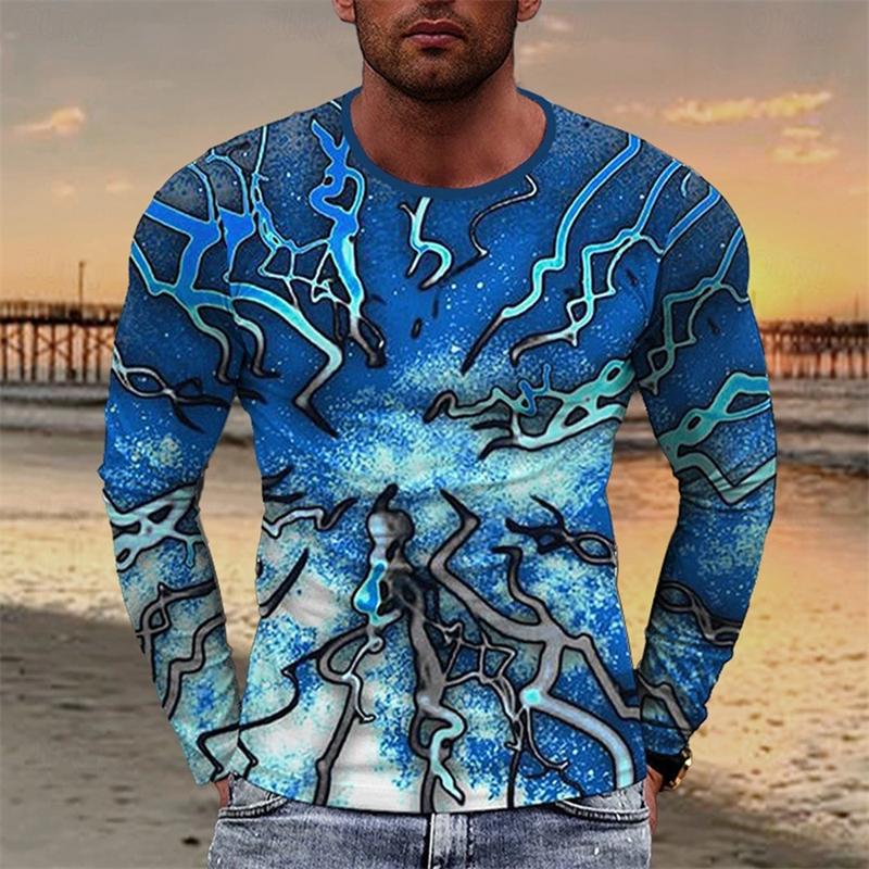 Simple 3D Digital Printed Men's Casual and Comfortable Round Neck Long Sleeved T-shirt
