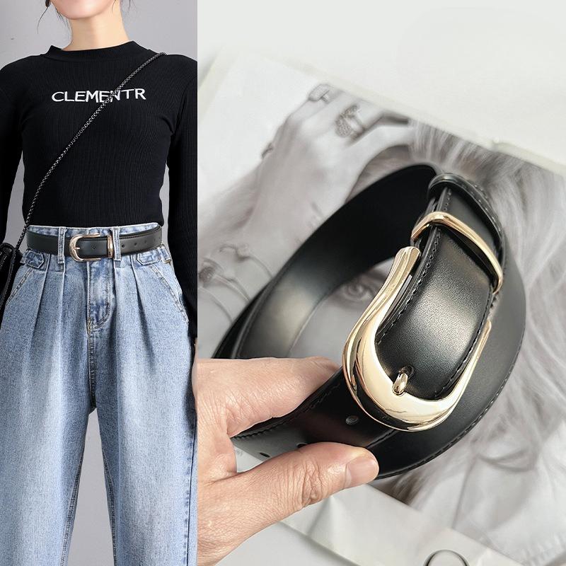 Genuine Leather Women's Belt, Cowhide, Versatile and Simple Matching with Casual Pants, Jeans, Women's Decorative Leather Belt Width 3.3CM