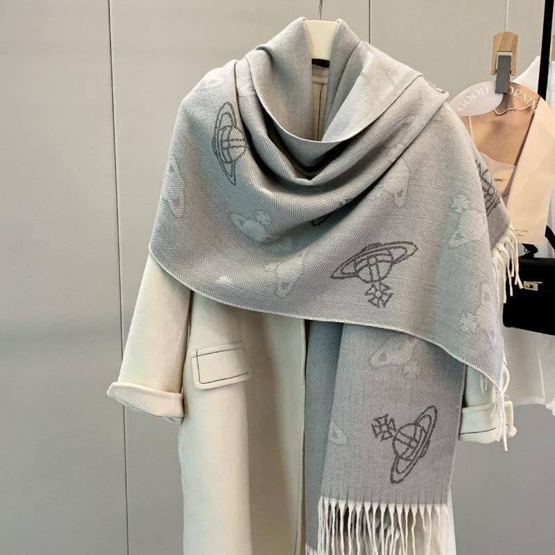 Autumn and Winter Thickened Sheep Imitation Cashmere Classic Saturn Scarf, Pattern Double-sided Women's Warm Light Luxury Shawl, Scarf