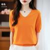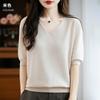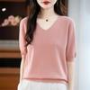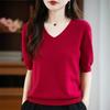 Knitted Short-sleeved T-shirt for Women A Thin V-neck Half-sleeve Top for Summer and Autumn