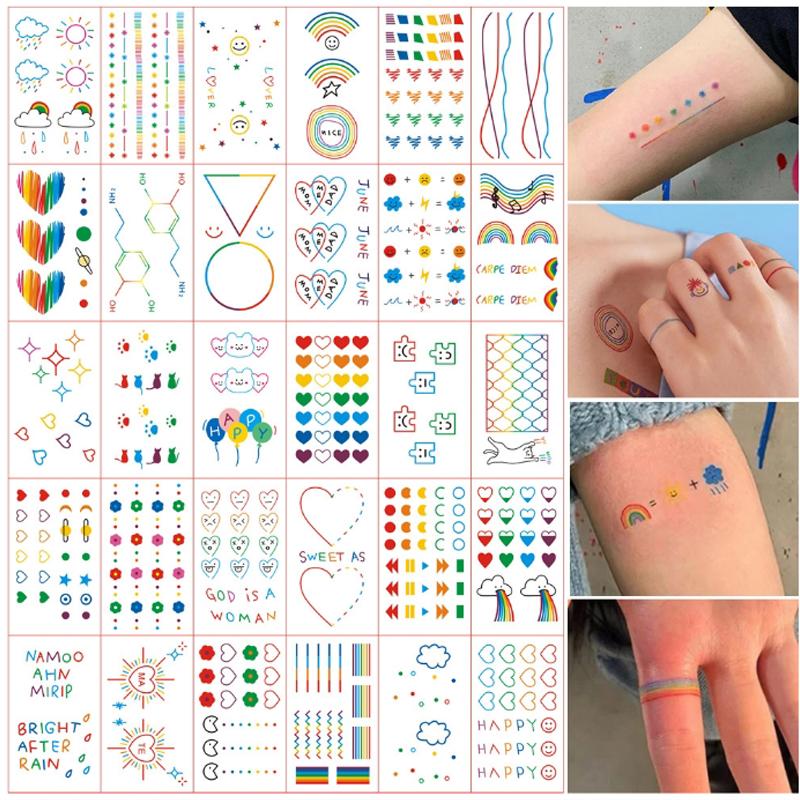 30pcs Dazzling Elegant Style Tattoo Stickers For Girls Personalized Smiling Face Cute Rainbow Line Small And Fresh Tattoo